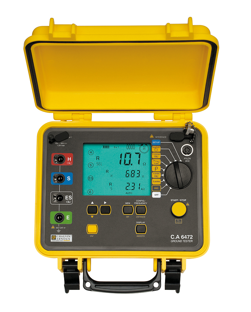 Измеритель сопротивления заземляющих устройств Chauvin Arnoux CA 6472 – прибор, с помощью которого проводится комплексная проверка контуров и устройств заземления. Устройство определяет сопротивление защитного контура и грунта, связь между элементами заземления, сопротивление и проводимость, потенциал грунта.